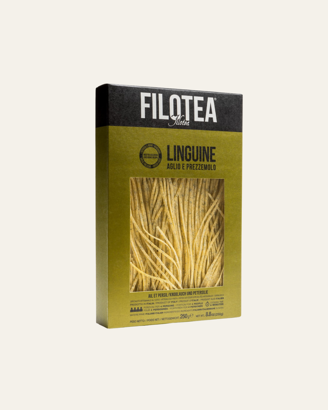 Le linguine Filotea hanno una grande capacità di trattenere i sughi. Arricchite con aglio e prezzemolo sono adatte a sughi di pesce, crostacei e molluschi, ma esprimono tutta la loro bontà anche condite semplicemente con un filo di olio extravergine di oliva ed una spolverata di Parmigiano Reggiano